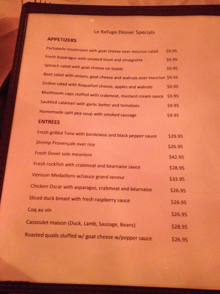 Le Refuge Restaurant in Alexandria, VA is a hidden gem offering authentic French cuisine in an intimate setting. The restaurant is known for its outstanding service and charming French decor, creating a cozy and romantic atmosphere. Customers rave about the impeccable dishes, with highlights like the Escargot, Duck Breast, and Seared Tuna. The menu showcases traditional French favorites with a modern twist, all prepared with care and precision. The staff, who have been trained in France, are attentive and knowledgeable, ensuring a top-notch dining experience. Whether you're celebrating a special occasion or simply looking for a memorable meal, Le Refuge Restaurant is a must-visit spot for French food lovers. Make a reservation in advance to savor the flavors of France in this delightful establishment.